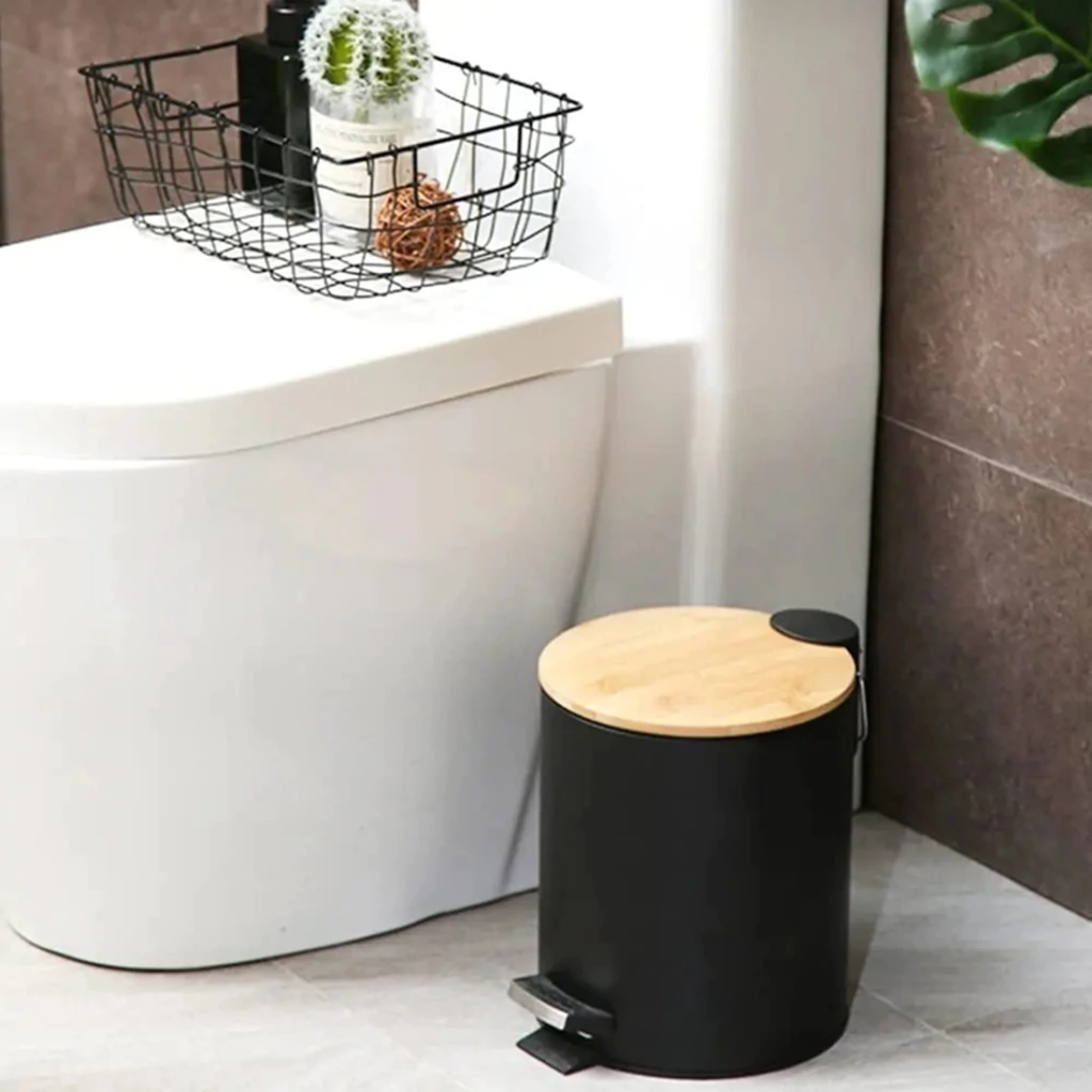 Un producto que acompaña el funcinamiento de tus espacios,cuenta con un pedal de apertura y cierre.Su tapa de bambu aporta calidez a tu espacio,combinable con otras texturas.